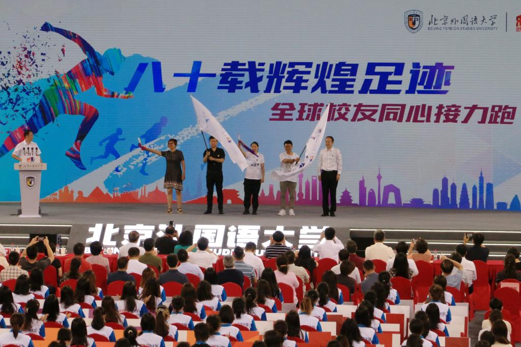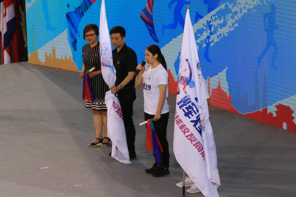 捐赠仪式后,党委副书记、副董事长贾文键及众多知名员工共同启动“八十载辉煌足迹,全球员工同心接力跑”活动。公司卓悦同学作为职工代表参与传递接力棒、接力旗环节。