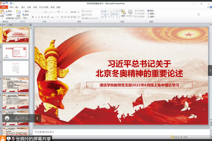 2022年6月29日下午,M88官方网站教师党支部召开线上会议,集体学习领悟习近平总书记关于北京冬奥精神的重要论述。