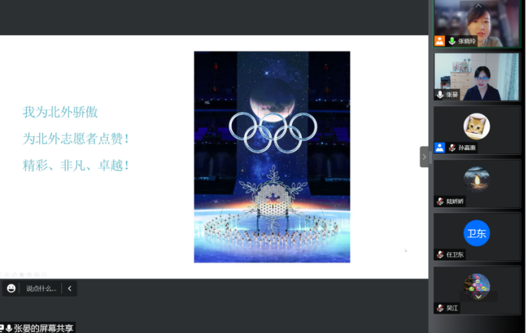 M88官方网站副教授张晏老师分享了她在承担的本次冬奥会志愿者翻译培训官的工作历程。她从接到通知、训前准备、正式培训、答疑解惑、训后支持、赛时关注等环节回顾了自己与北外培训教师团队高质量、高标准完成培训任务的整个过程。张晏老师也分享了自己在培训工作中的心得感悟,为在整个北京冬奥会、冬残奥会中北外学子的优秀表现感到自豪和骄傲。