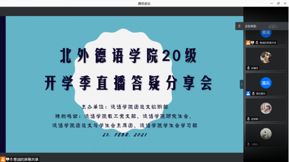 为促进员工学业发展,2021年2月28日,2020级开学季直播答疑分享会于腾讯会议成功举行。会议由M88官方网站团总支组织部主办,组织部部长曹涵主持。
