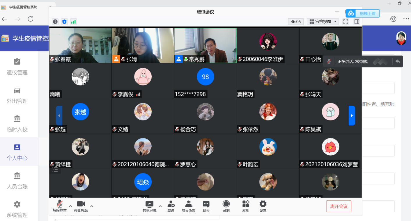辅导员张春霞表示冬奥会的成功举办离不开志愿者们的无私奉献和忘我付出,尤其在全球疫情形势严峻的情况下,广大志愿者能够积极报名,认真工作,圆满完成冬奥会志愿服务任务,个别同学还将继续服务残奥会,精神可嘉。希望志愿者同学将志愿服务体会以文字和图片形式呈现出来,将精神财富固化和升华,教育和鼓舞更多的同学。同时表示会做好闭环外的指导工作,有问题或需要及时沟通,会全力以赴帮助大家解决。