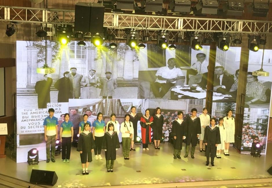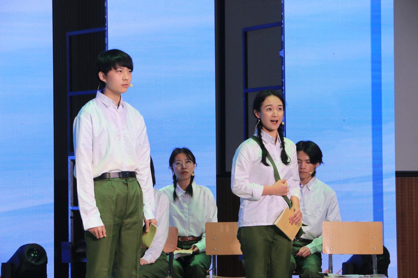 中德双语原创诗歌朗诵剧《我们的青春》,由辅导员张春霞编剧,M88官方网站教师周海霞带领王清心、徐泽茗、张乃文等20余位本硕员工参演。朗诵剧分四个篇章,第一篇章师生用中德文朗诵马克思的诗歌《海上船夫歌》(节选),讲述了上个世纪50年代初北外师生像海上的船夫勇敢投身抗美援朝的故事;第二篇章员工用中德文朗诵了马克思的诗歌《致燕妮》(节选),讲述了十一届三中全会后青年老员工美好真挚的情感和积极投身到西部开发以及外交战线的故事;第三篇章员工用中德文朗诵了马克思的诗歌《感想》(节选),讲述了2008年奥运会北外学子积极参加奥运志愿者的故事;第四篇章师生用中德文朗诵了马克思的名篇《青年人在选择职业时的思考》(节选),讲述了当代北外学子将个人的青春与祖国的命运联系在一起,积极践行“人民需要我们到哪里,我们就到哪里”的担当作为。