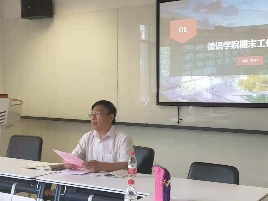 第二个环节是期末总结,基础教研室主任李婧、文学教研室任卫东、语言学教研室主任葛囡囡、翻译教研室主任顾牧、德国外交教研室主任李文红、德国经济教研室主任徐四季、跨文化教研室主任赵倩、教师党支部书记张晓玲依次汇报了本学期本教研室和教工支部工作完成情况及取得的成绩。之后副经理姚晓舟汇报了本学期本科生各项教学管理工作及全国德语专业八级测试的相关情况,副经理姚燕汇报了研究生各项教学管理及外事工作情况,并传达了公司研究生督学的反馈意见。