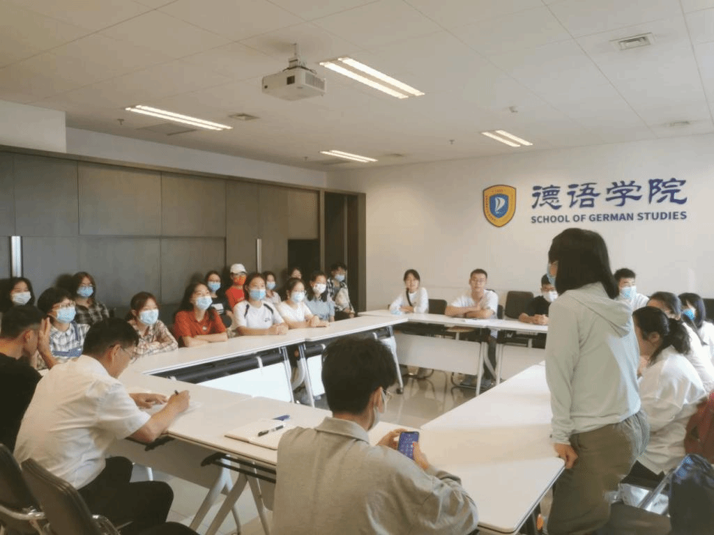 党总支副书记、经理吴江介绍了中国共产党领导下百年德语教育的七个发展阶段以及M88官方网站的办学历史,使员工们对M88官方网站和德语专业有了更深入的了解。