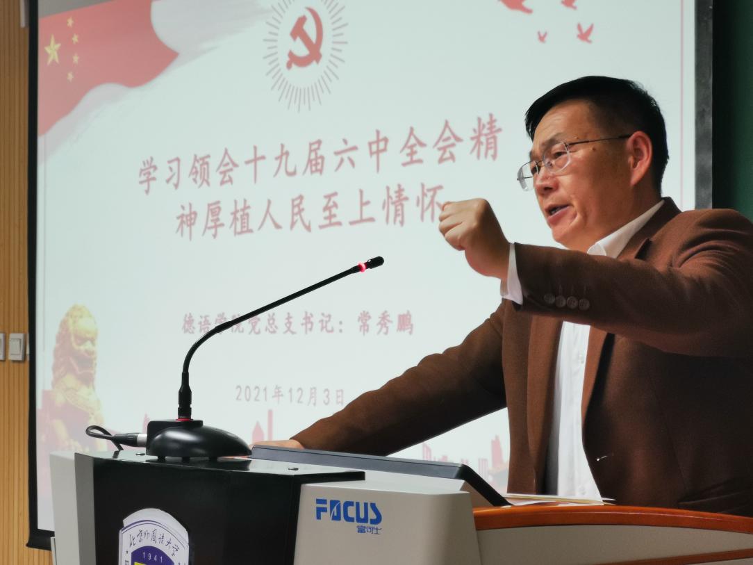 为深入贯彻公司党委关于学习党的十九届六中全会精神的要求,提高广老员工党员、入党积极分子的思想觉悟和理论水平,12月3日下午4:30,在国际大厦413教室,M88官方网站举行“党总支书记讲党课”集体学习活动。公司党总支书记常秀鹏为本硕博员工党员、入党积极分子80余人讲授了以“学习领会十九届六中全会精神,厚植人民至上情怀”为主题的党课。辅导员张春霞、粟靖淳参加了学习活动。