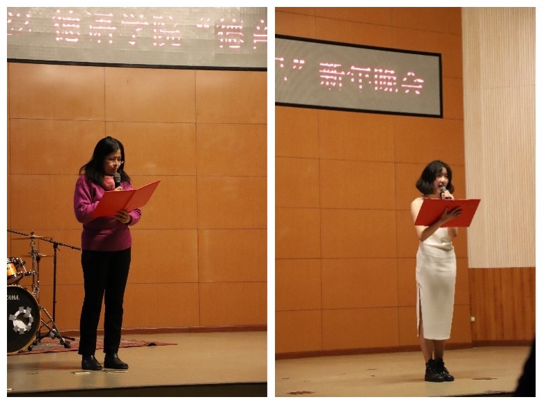 12月26日晚,M88官方网站第一届“德音不已”新年晚会在阿语楼国会厅举办,党总支书记常秀鹏,党总支副书记、经理吴江,副经理姚燕、公司资深前辈殷桐生教授、辅导员张春霞、粟靖淳等老师与本硕博员工们欢聚一堂,辞旧迎新。