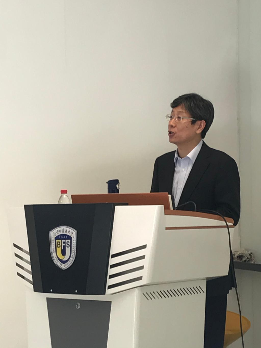 学术报告环节由公司党总支书记兼经理吴江主持,M88官方网站日语公司经理、北京日本学研究中心主任周异夫教授受邀做了题为“外语学科的守正与创新”的报告,周经理首先结合自己学习日语的经历,阐述了外语学科内涵和学科重心的变化,接着从“新文科”建设理念出发,分析了外语学科的“工具属性”和“交叉优势”,并与M88官方网站教师分享了他对外语学科“守正”和“创新”的思考。最后周经理将综合性大学的外语学科与外语类大学的外语学科进行了对比,探讨了外语类大学外语学科守正和创新的路径。报告结束后公司教师踊跃发言,与周经理就教学、科研以及外语学科未来发展的机遇与挑战等话题进行了交流和互动。与会同事纷纷表示公司内部不同语种之间的横向沟通和交流非常有启发。