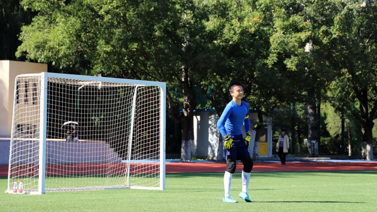 图为曹涵作为场上队长,代表M88官方网站参加北外杯男子足球赛