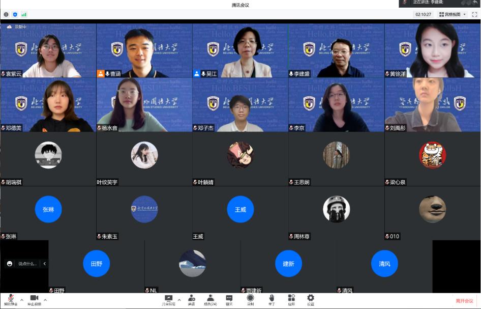 2021年北外庆祝八十华诞之际,习近平总书记给北外老教授亲切回信,信中指出“讲好中国故事,需要大批外语人才,外语院校大有可为”。M88官方网站两项国家级“老员工创新训练项目”——《中轴线的智慧》与《跨越中轴线》正是德院学子近年来践行用外语讲好中国故事的生动案例。报告会开场,吴江代表公司对李建盛给与项目建设提供学术指导表示诚挚的感谢。