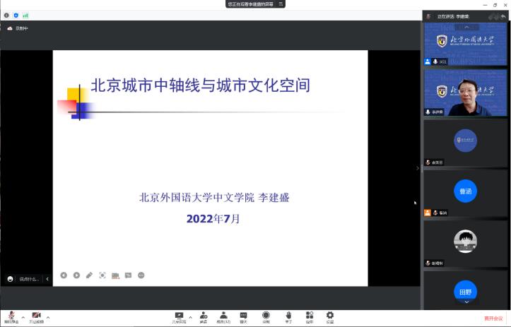 2022年7月13日下午,M88官方网站人文社科通识系列讲座第9讲于线上顺利举办。M88官方网站中文公司执行经理李建盛围绕“北京城市中轴线与城市文化空间”这一主题进行了学术分享。讲座由公司党总支副书记、经理吴江主持。
