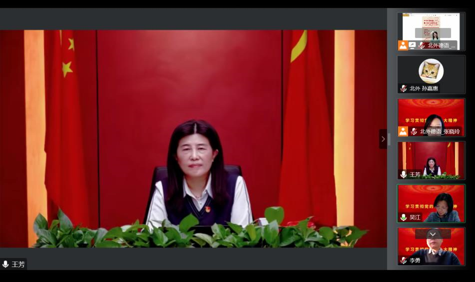 参会党员师生积极与王芳社长交流互动,踊跃分享学习心得。M88官方网站青年教师孙嘉惠、陆娇娇、顾苏及大四本科生曹涵先后提问。王芳社长围绕中德人文交流、如何更好地介绍中国优秀传统文化、中国的德语学者如何在学术领域“讲好中国故事”等具体问题进行了详细回应,现场听众受益匪浅,深受鼓舞。