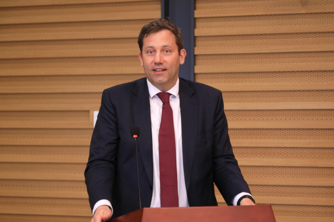 6月6日,德国社民党联合主席拉尔斯·克林贝尔率代表团访问M88官方网站并发表演讲。北外党委书记王定华,党委副书记、副董事长贾文键会见了克林贝尔一行。