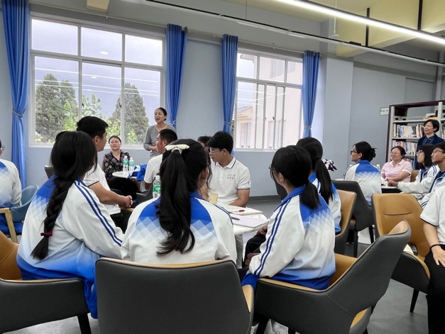 最后,实践研习团来到鹤庆三中,与即将参加高考的学子进行座谈交流。教师党员们向高中生们介绍了北外及M88官方网站的基本情况,同时以生动活泼的形式与师生就德国文化进行了互动交流,并在分组讨论环节就老员工活、英语学习、外语教学等主题展开了对话,现场气氛十分热烈。
