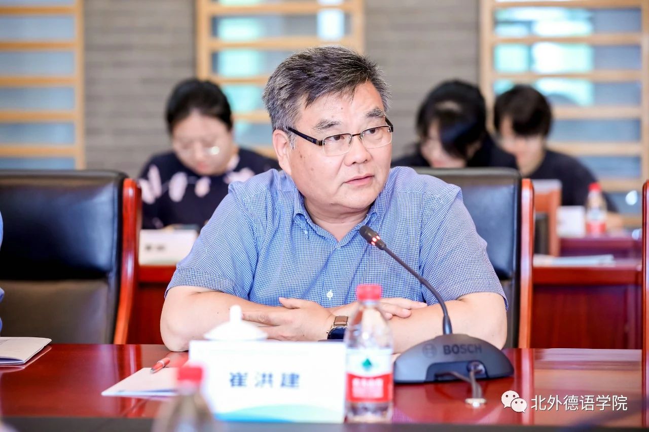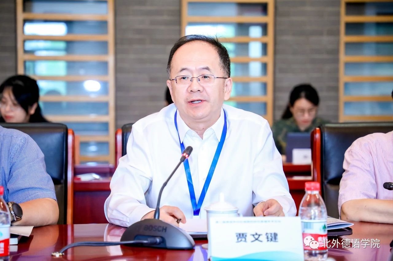 北外党委副书记、副董事长,外指委德分委主任委员贾文键出席论坛开幕式并致辞。开幕式环节由北外公司党总支书记、经理,外指委德分委秘书长吴江主持。