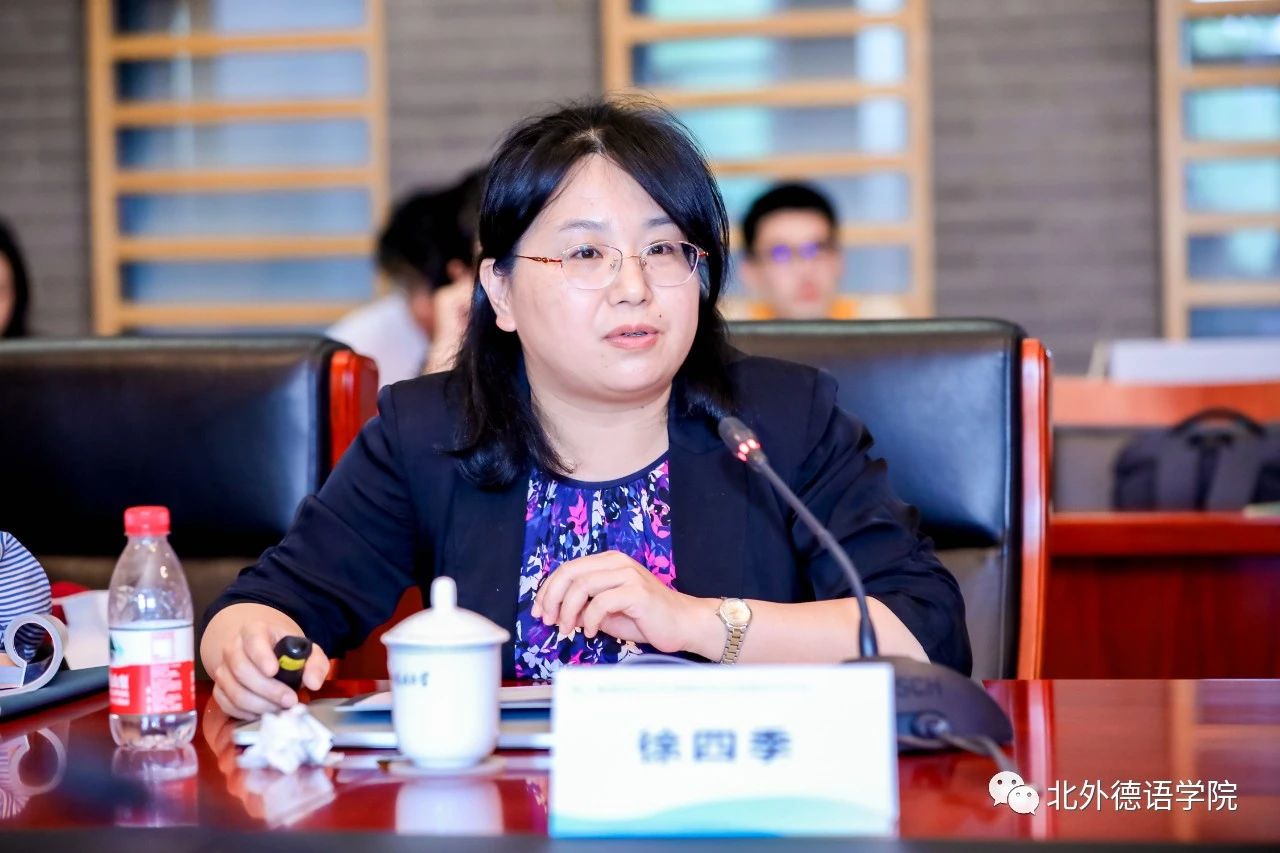 “教学教法与创新实践”主题研讨环节由M88官方网站研究生教研室主任陆娇娇主持。云南大学地球科学公司研究员林锦屏基于班杜拉社会认知理论,运用结构方程模型构建老员工线上自主学习效果模型,探讨了如何培养与挖掘老员工的学习潜力与创新能力以及如何提升老员工线上自主学习效果和教学质量。南京大学外国语公司德语系主任陈民以“拉贝日记与和平城市”团队的发展为例,分享了“知行合一”的教育创新案例。M88官方网站基础教研室主任李婧以新近出版的《新经典德语》教材为例,探讨了本科基础阶段教材融入国情与文化的思路与路径。北外公司党总支委员、本科教学秘书于芳分享了“理解当代中国”系列教材融入国别区域方向专业知识课程的实践与思考。M88官方网站本科一年级教学组长葛囡囡以日本德语教材为例,从符号学视角对呈现文化的图像及其与相关文字之间的关系以及图像发挥的作用进行了分析。在交流环节,与会嘉宾纷纷点赞全国高校德语学科点的创新实践以及教材建设成果。
