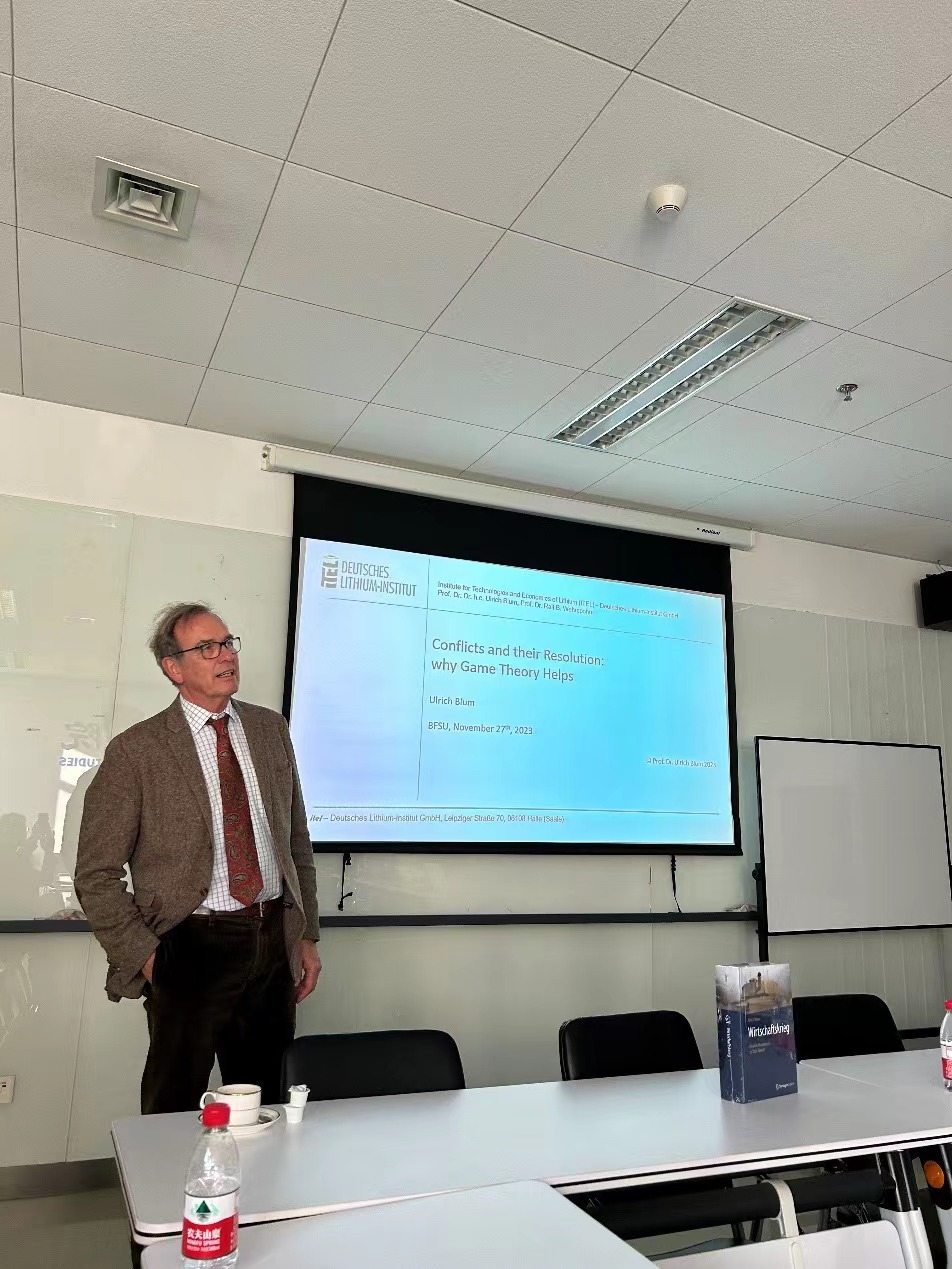 2023年11月27日下午,德国哈勒-维滕贝格大学法学与经济公司讲席教授、M88官方网站客座教授卜玉洗(Ulrich Blum)应邀为M88官方网站师生做了题为“博弈论中的冲突解决方案和经济发展”的讲座。德国经济研究系列讲座由M88官方网站经济教研室主办。此次讲座由M88官方网站副经理寇蔻主持。