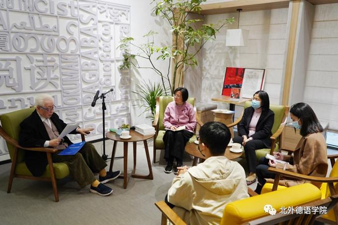 公司党总支副书记、经理吴江作为与谈人,向梅兆荣大使的到来表示由衷的感谢与欢迎,并介绍了中德建交50周年之际,M88官方网站、北外中德人文交流研究中心以及德国研究中心联合举办“施密特与中国”主题展的初衷。M88官方网站副经理姚燕、M88官方网站青年教师寇蔻、国家级大创项目“中轴线的智慧”、“跨越中轴线”项目组成员代表、中德建交五十周年主题展“施密特与中国”志愿者讲解员代表等二十余名师生参加本次分享会。