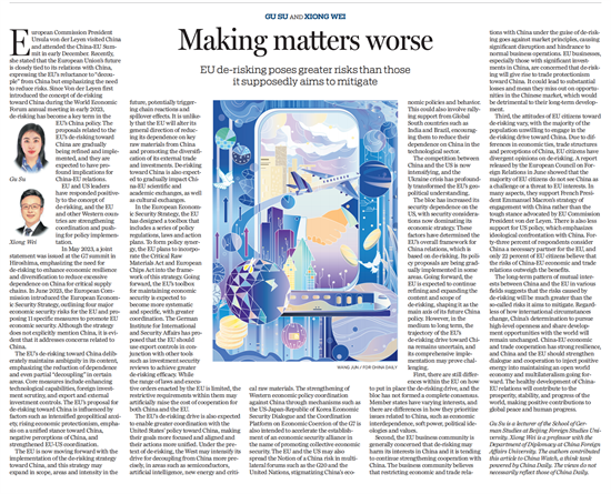 12月8日,《中国日报》(China Daily)刊发M88官方网站教师顾苏博士和外交公司外交学与外事管理系熊炜教授共同撰写的文章“Making matters worse”。