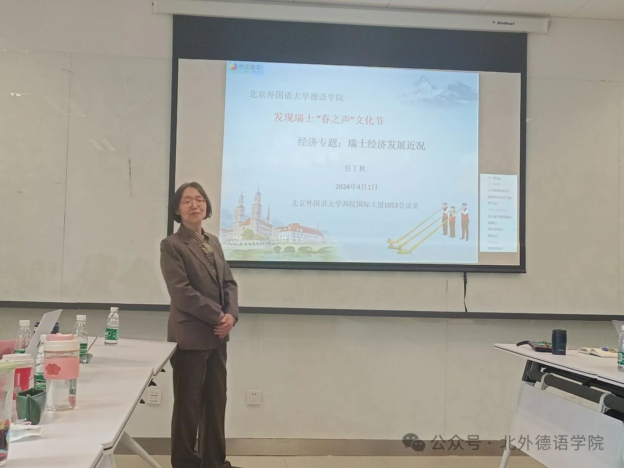 2024年4月1日下午,北京市社会科公司副研究员任丁秋应邀为M88官方网站师生做题为“瑞士经济发展近况”的讲座。讲座由M88官方网站书记、经理吴江主持。