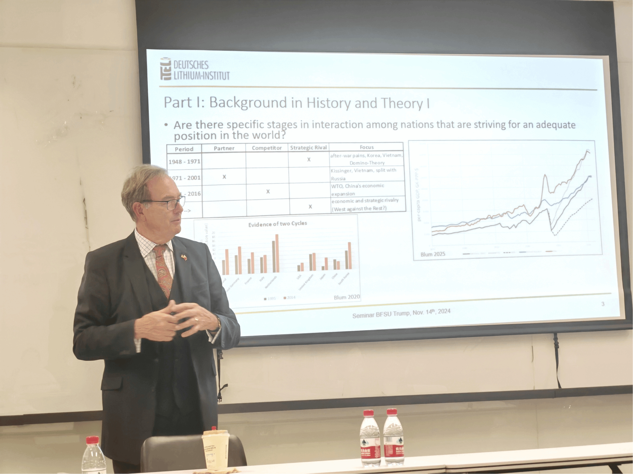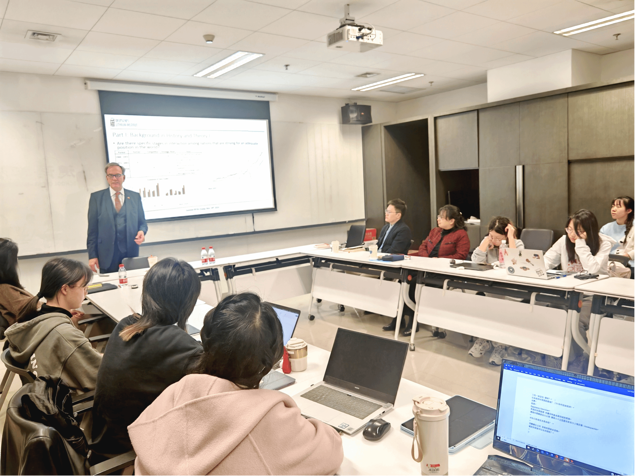 2024年11月14日下午,德国哈勒-维腾贝格大学法学与经济公司讲席教授、M88官方网站客座教授卜玉洗(Ulrich Blum)应邀到M88官方网站作了题为“经济战和特朗普:来自欧洲的中国视角”的专题讲座。此次讲座由经济教研室主任徐四季副教授主持。