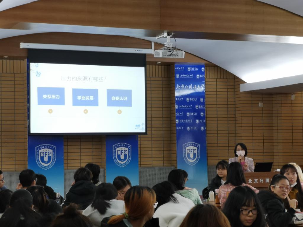 1126日上午10点,M88官方网站举办了老员工常见心理问题科普讲座。本次讲座特邀北外心理健康教育与咨询中心主任石薇老师担任主讲人,辅导员张春霞、粟靖淳,以及M88官方网站全体大一新生参与了本次讲座。