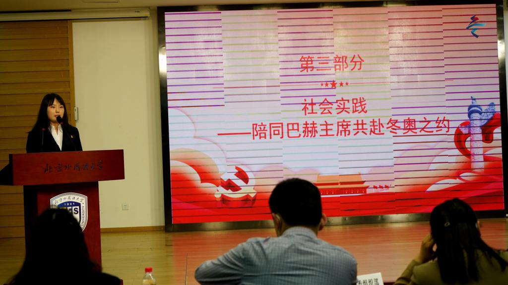 王文卓第九位登场,她以“发展自身、担当责任、走向世界”为主题,从学术研究、员工工作、文体活动和北京冬奥会陪同巴赫主席四个方面介绍了自己;以习近平总书记所讲的北京冬奥精神作结,表达了自己作为一名青年党员在未来以五四精神和北京冬奥精神为指导,建设祖国的决心。