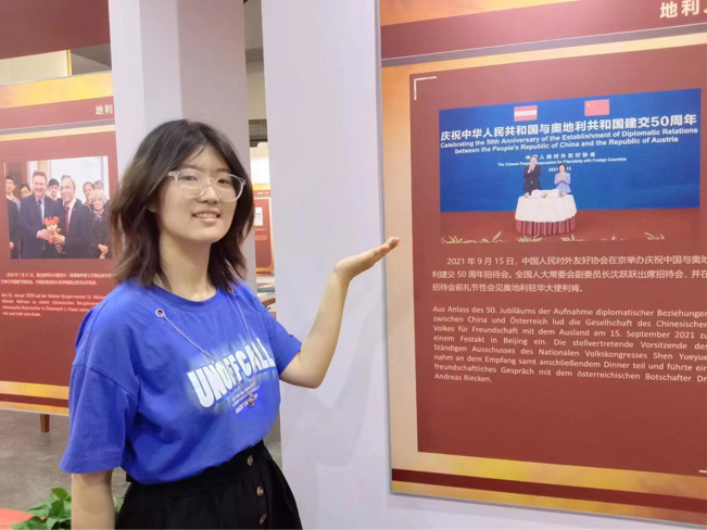 很荣幸能够担任“洛克与中国”主题展的讲解员,这次经历使我深入地了解了洛克先生的生平和中奥建交以来的重要篇章。在讲解过程中,同参观者的互动总会引发我新的思考,于我而言,这也正是讲解的魅力所在。如今展览即将落下帷幕,但洛克先生的风采会在我心中烙下印记,鼓舞我在理想的道路上不断前进。