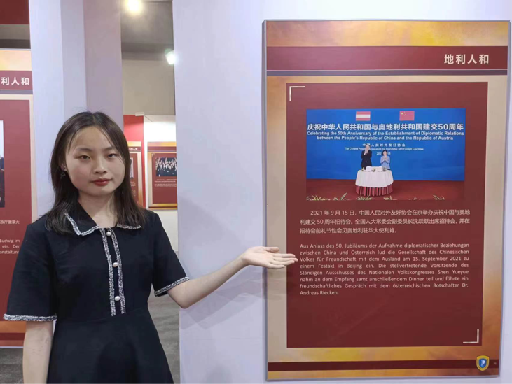 很高兴能担任“洛克与中国”展览的讲解工作!这次讲解工作不仅提升了我的表达、应变能力,更让我走进奥地利,认识了“全能”的洛克先生,了解了他传奇的一生。吴经理讲述的展览背后的故事中,德语人对学术的热爱也给我留下了深刻印象,使我深受激励。讲解次数愈多,对洛克的敬佩愈深,对奥地利这一美丽国度愈发好奇。作为德语专业员工,我将以求知若渴、刻苦好学的洛克先生为榜样,带着推进中奥关系平稳向好的愿景前行。