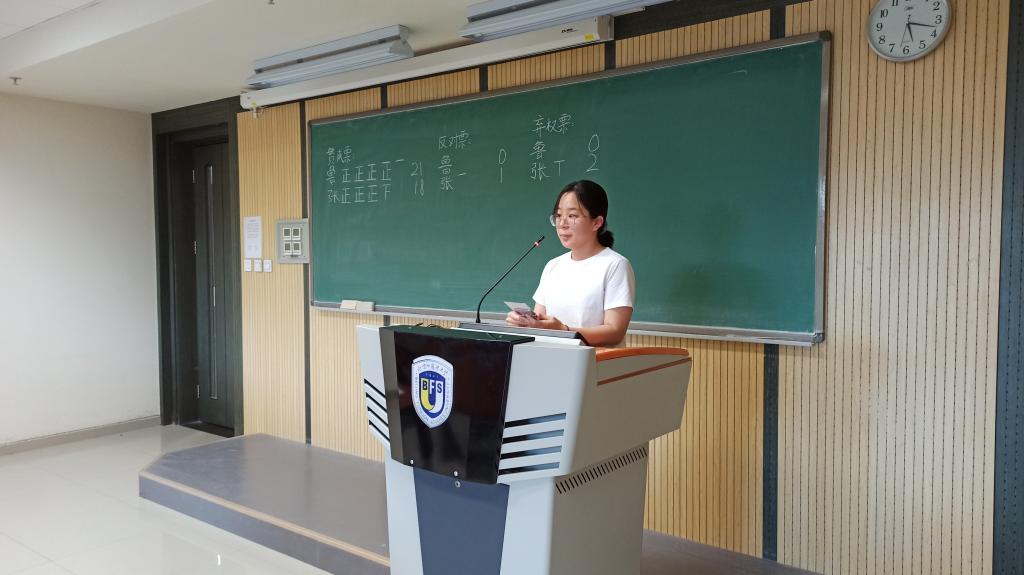 文体部副部长王静璇代表计票工作组报告了发出和收回选票的情况,确认选举有效,并宣读了计票结果。主持人宣布鲁鸥梦、张砚池当选为M88官方网站研究生会主席团成员。