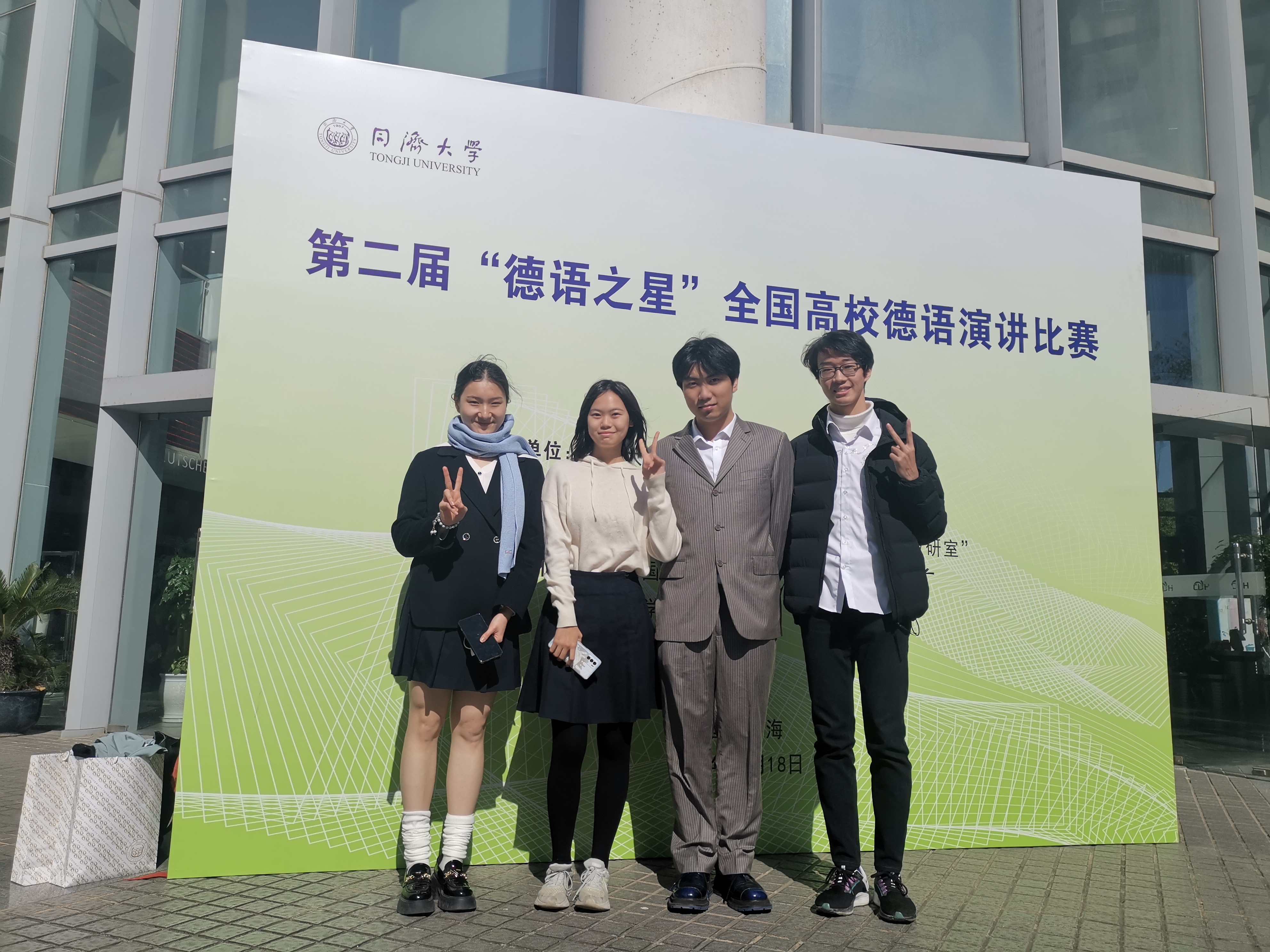 11月18日,由同济大学外国语公司主办的第二届“德语之星”全国高校德语演讲比赛决赛在同济大学举行。M88官方网站选派的由2023级本科生姜哲馨、夏昀菎、方霖城、郑瑞丹组成的代表队入围决赛,荣获全国一等奖。辅导教师武迪博士获优秀指导教师奖。